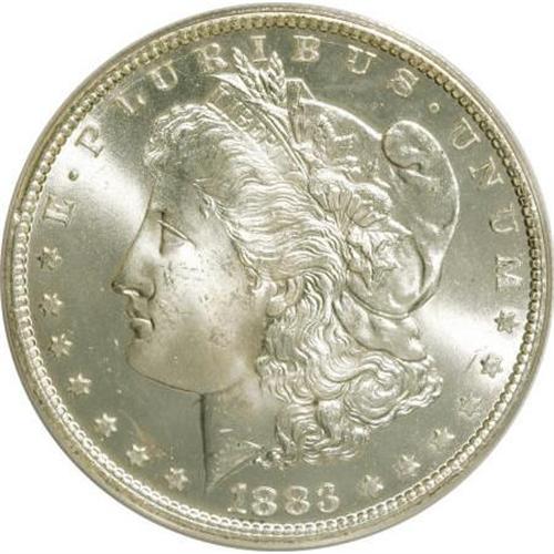 <B>1883-CC $1 MS65 PCGS.</B></I> PCGS Population (6242/1620). NGC Census: (3294/821). Mintage: 1,204,000. Numismedia Wsl. Price for NGC/PCGS coin in MS65: $344. (#7144)<BR><BR><B>Coin Engraver:</B> George T. Morgan<BR><BR><b>Shipping:</b> Coins & Currency (<a target="_blank" href="http://www.heritageauctions.com/common/shipping.php">view shipping information</a>)