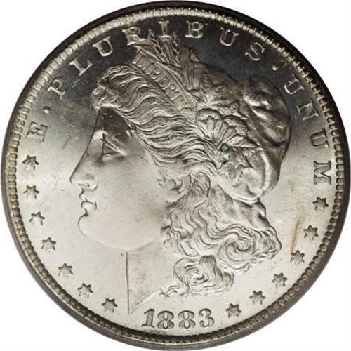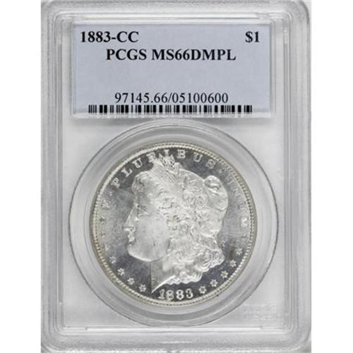 <B>1883-CC $1 MS66 Deep Mirror Prooflike PCGS.</B></I> Fully brilliant surfaces spread across both sides of this appealing Morgan silver dollar. The obverse and reverse of this Premium Gem each have deeply mirrored fields around frosty devices. Examples are seldom found any finer than this piece. PCGS has only certified two finer Deep Mirror Prooflike examples (10/07).<BR><BR><b>Shipping:</b> Coins & Currency (<a target="_blank" href="http://www.heritageauctions.com/common/shipping.php">view shipping information</a>)