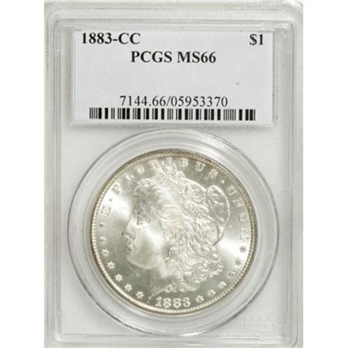 <B>1883-CC $1 MS66 PCGS.</B></I> Intense luster and excellent overall detail are the prime draws of this exquisitely preserved Carson City dollar. A lovely survivor from this issue of just over 1.2 million pieces.<BR><BR><B>Coin Engraver:</B> George T. Morgan<BR><BR><b>Shipping:</b> Coins & Currency (<a target="_blank" href="http://www.heritageauctions.com/common/shipping.php">view shipping information</a>)