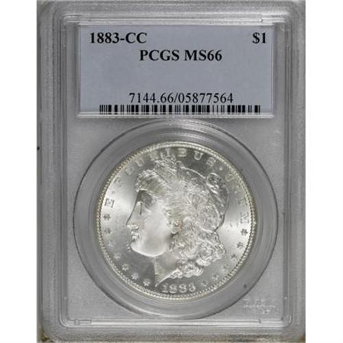 <B>1883-CC $1 MS66 PCGS.</B></I> Sharply struck with mild contrast between the mildly frosted devices and the flashy, appreciably reflective fields. Whispers of silver-gray haze visit the margins of this delightful Carson City dollar.<BR><BR><B>Coin Engraver:</B> George T. Morgan<BR><BR><b>Shipping:</b> Coins & Currency (<a target="_blank" href="http://www.heritageauctions.com/common/shipping.php">view shipping information</a>)