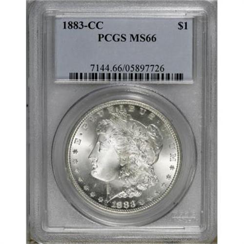 <B>1883-CC $1 MS66 PCGS.</B></I> Well-defined overall, though Liberty's hair shows a touch of softness. The shining surfaces border on flashy, and the visual appeal and preservation are equally impressive. A great Carson City coin.<BR><BR><B>Coin Engraver:</B> George T. Morgan<BR><BR><b>Shipping:</b> Coins & Currency (<a target="_blank" href="http://www.heritageauctions.com/common/shipping.php">view shipping information</a>)