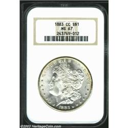 <TR><TD width="100%"><TABLE cellSpacing=1 cellPadding=3 width="100%" border=0><TBODY><TR><TD width="100%" bgColor=#79735c><FONT face=arial color=#ffffff size=3><B>Description</B> </FONT></TD></TR><TR><TD width="100%" bgColor=#ffffff><FONT face=arial size=2><B>1883-CC $1 MS67 NGC.</B></I> An utterly pristine example with intense, satiny luster and fully struck central devices that have escaped virtually all signs of contact. The surfaces are untoned save for tinges of golden color at the edges. Just a great looking Carson City Dollar. </FONT></TD></TR></TBODY></TABLE></TD></TR></TBODY></TABLE><BR><A name=PricesRealized></A><TABLE cellSpacing=0 cellPadding=0 width="100%" bgColor=#000000 border=0><TBODY><TR><TD width="100%"><TABLE cellSpacing=1 cellPadding=3 width="100%" border=0><TBODY><TR><TD width="100%" bgColor=#79735c><A name=PR><FONT face=arial color=#ffffff size=3><B>Previous Prices from Heritage Auctions</B> </FONT></A></TD></TR><TR><TD bgColor=#f6f6ed><TABLE cellSpacing=0 cellPadding=0 width="100%" border=1><TBODY><TR><TD align=middle width="33%"><B>Date</B></TD><TD align=middle width="33%"><B>Service</B></TD><TD align=middle width="33%"><B>Price</B></TD></TR><TR bgColor=whitesmoke><TD width="33%"><B>01/11/2003</B></TD><TD width="33%">PCGS</TD><TD width="33%">$3,220.00</TD></TR><TR bgColor=whitesmoke><TD width="33%"><B>02/16/2000</B></TD><TD width="33%">PCGS</TD><TD width="33%">$2,645.00</TD></TR><TR bgColor=whitesmoke><TD width="33%"><B>02/01/2001</B></TD><TD width="33%">PCGS</TD><TD width="33%">$3,220.00</TD></TR><TR bgColor=whitesmoke><TD width="33%"><B>04/27/2002</B></TD><TD width="33%">PCGS</TD><TD width="33%">$4,140.00</TD></TR><TR bgColor=whitesmoke><TD width="33%"><B>09/13/1997</B></TD><TD width="33%">PCGS</TD><TD width="33%">$2,530.00</TD></TR><TR bgColor=whitesmoke><TD width="33%"><B>08/13/1999</B></TD><TD width="33%">PCGS</TD><TD width="33%">$4,600.00</TD></TR><TR bgColor=whitesmoke><TD width="33%"><B>06/10/2000</B></TD><TD width="33%">PCGS</TD><TD width="33%">$3,335.00</TD></TR><TR bgColor=whitesmoke><TD width="33%"><B>01/12/2002</B></TD><TD width="33%">PCGS</TD><TD width="33%">$2,875.00</TD></TR><TR bgColor=whitesmoke><TD width="33%"><B>08/08/2001</B></TD><TD width="33%">PCGS</TD><TD width="33%">$3,335.00</TD></TR><TR bgColor=whitesmoke><TD width="33%"><B>08/08/2001</B></TD><TD width="33%">PCGS</TD><TD width="33%">$3,565.00</TD></TR><TR bgColor=whitesmoke><TD width="33%"><B>11/01/1998</B></TD><TD width="33%">PCGS</TD><TD width="33%">$2,990.00</TD></TR><TR bgColor=whitesmoke><TD width="33%"><B>11/01/1998</B></TD><TD width="33%">PCGS</TD><TD width="33%">$3,335.00</TD></TR><TR bgColor=whitesmoke><TD width="33%"><B>01/01/1999</B></TD><TD width="33%">PCGS</TD><TD width="33%">$4,140.00</TD></TR><TR bgColor=whitesmoke><TD width="33%"><B>03/01/1999</B></TD><TD width="33%">PCGS</TD><TD width="33%">$2,875.00</TD></TR><TR bgColor=whitesmoke><TD width="33%"><B>06/01/2000</B></TD><TD width="33%">PCGS</TD><TD width="33%">$3,450.00</TD></TR><TR bgColor=whitesmoke><TD width="33%"><B>10/01/1998</B></TD><TD width="33%">PCGS</TD><TD width="33%">$4,180.00</TD></TR><TR bgColor=whitesmoke><TD width="33%"><B>01/05/2001</B></TD><TD width="33%">PCGS</TD><TD width="33%">$4,140.00</TD></TR><TR bgColor=whitesmoke><TD width="33%"><B>02/12/2000</B></TD><TD width="33%">PCGS</TD><TD width="33%">$2,990.00</TD></TR><TR bgColor=whitesmoke><TD width="33%"><B>01/06/1996</B></TD><TD width="33%">PCGS</TD><TD width="33%">$2,750.00</TD></TR><TR bgColor=whitesmoke><TD width="33%"><B>05/05/2000</B></TD><TD width="33%">PCGS</TD><TD width="33%">$2,702.50</TD></TR><TR bgColor=whitesmoke><TD width="33%"><B>06/06/1998</B></TD><TD width="33%">PCGS</TD><TD width="33%">$2,990.00</TD></TR><TR bgColor=whitesmoke><TD width="33%"><B>03/23/2003</B></TD><TD width="33%">NGC</TD><TD width="33%">$2,415.00</TD></TR><TR bgColor=whitesmoke><TD width="33%"><B>03/23/2003</B></TD><TD width="33%">NGC</TD><TD width="33%">$2,530.00</TD></TR><TR bgColor=whitesmoke><TD width="33%"><B>10/06/2001</B></TD><TD width="33%">NGC</TD><TD width="33%">$2,645.00</TD></TR><TR bgColor=whitesmoke><TD width="33%"><B>05/05/2000</B></TD><TD width="33%">NGC</TD><TD width="33%">$2,530.00</TD></TR><TR bgColor=whitesmoke><TD width="33%"><B>10/31/2000</B></TD><TD width="33%">NGC</TD><TD width="33%">$2,451.00</TD></TR><TR bgColor=whitesmoke><TD width="33%"><B>01/06/1996</B></TD><TD width="33%">NGC</TD><TD width="33%">$1,650.00</TD></TR><TR bgColor=whitesmoke><TD width="33%"><B>10/06/2000</B></TD><TD width="33%">NGC</TD><TD width="33%">$2,530.00</TD></TR></TBODY></TABLE></TD></TR><TR><TD bgColor=#ffffff><FONT face=arial size=1 ?>PLEASE NOTE: All prices realized reflect the final hammer price PLUS the buyer's premium in auctions that charge a buyer's premium. Each item has a notation at the top of the listing indicating whether that lot included a buyer's premium. Example: A item that sells with a final hammer price of $100 and a 20% buyer's premium will display with a price realized of $120. All information listed is intended to be as accurate as possible, but errors are possible. Please use this guide carefully and inform us of any inaccuracies. </FONT></TD></TR></TBODY></TABLE></TD></TR></TBODY></TABLE><BR><TABLE cellSpacing=0 cellPadding=0 width="100%" bgColor=#000000 border=0><TBODY><TR><TD width="100%"><TABLE cellSpacing=1 cellPadding=3 width="100%" border=0><TBODY><TR><TD width="100%" bgColor=#79735c colSpan=6><FONT face=arial color=#ffffff size=3><B>Price Guide*</B> </FONT></TD></TR><TR bgColor=#f6f6ed><TD align=middle><B>Grade</B> </TD><TD align=middle><B>Coin World<BR>(Trends)</B> </TD><TD align=middle><B>Numismedia<BR>Retail</B> </TD><TD align=middle><B>Numismedia<BR>Wholesale</B> </TD><TD align=middle><B>Coin<BR>Universe</B> </TD><TD align=middle><B>Heritage<BR>Value Index</B> </TD></TR><TR bgColor=#ffffff><TD align=middle>66</TD><TD align=right>$800.00</TD><TD align=right>$730.00</TD><TD align=right>$580.00</TD><TD align=right>$775.00</TD><TD align=r
