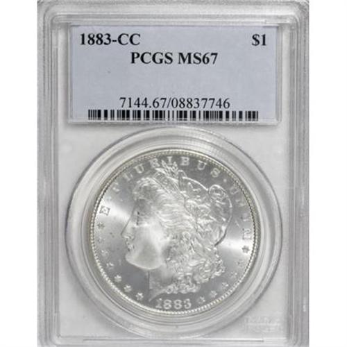 <B>1883-CC $1 MS67 PCGS.</B></I> A sensational Superb Gem with fully lustrous and brilliant mint frost. The date is a common Carson City issue that is a popular choice of type collectors who seek a single example from the Nevada facility. This piece has few peers. Population: 116 in 67, 3 finer (1/08).<BR><BR><B>Coin Engraver:</B> George T. Morgan<BR><BR><b>Shipping:</b> Coins & Currency (<a target="_blank" href="http://www.heritageauctions.com/common/shipping.php">view shipping information</a>)