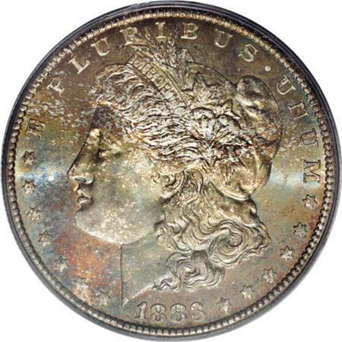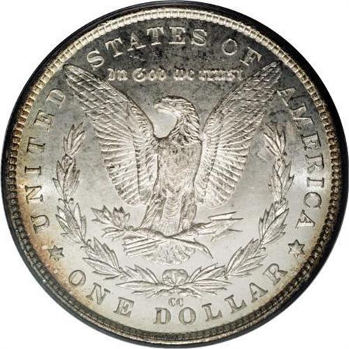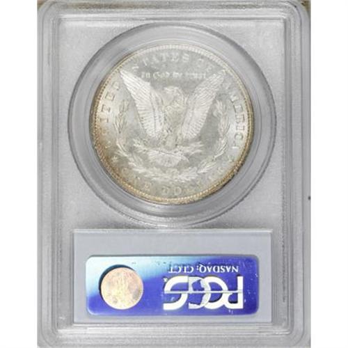 <B>1883-CC $1 MS67 Prooflike PCGS.</B></I> Dramatic orange-red, yellow-gold, peach, and powder-blue endow the obverse of this precisely struck Superb Gem. The reverse is mostly brilliant but has narrow bands of golden-brown near the rim. Moderately mirrored and exceptionally free from marks. An outstanding Carson City type coin. Population: 8 in 67 Prooflike, 0 finer (10/07).<BR><BR><B>Coin Engraver:</B> George T. Morgan<BR><BR><b>Shipping:</b> Coins & Currency (<a target="_blank" href="http://www.heritageauctions.com/common/shipping.php">view shipping information</a>)