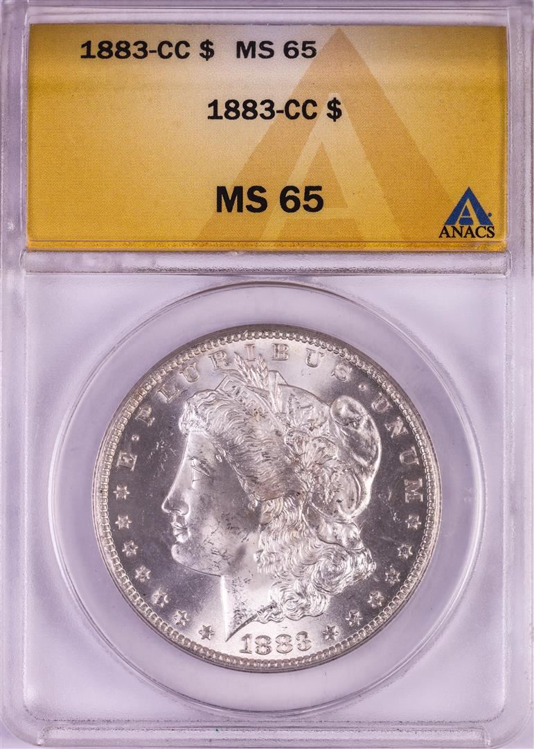 One 1883-CC $1 Morgan Silver Dollar Coin ANACS MS65. ANACS Certified.