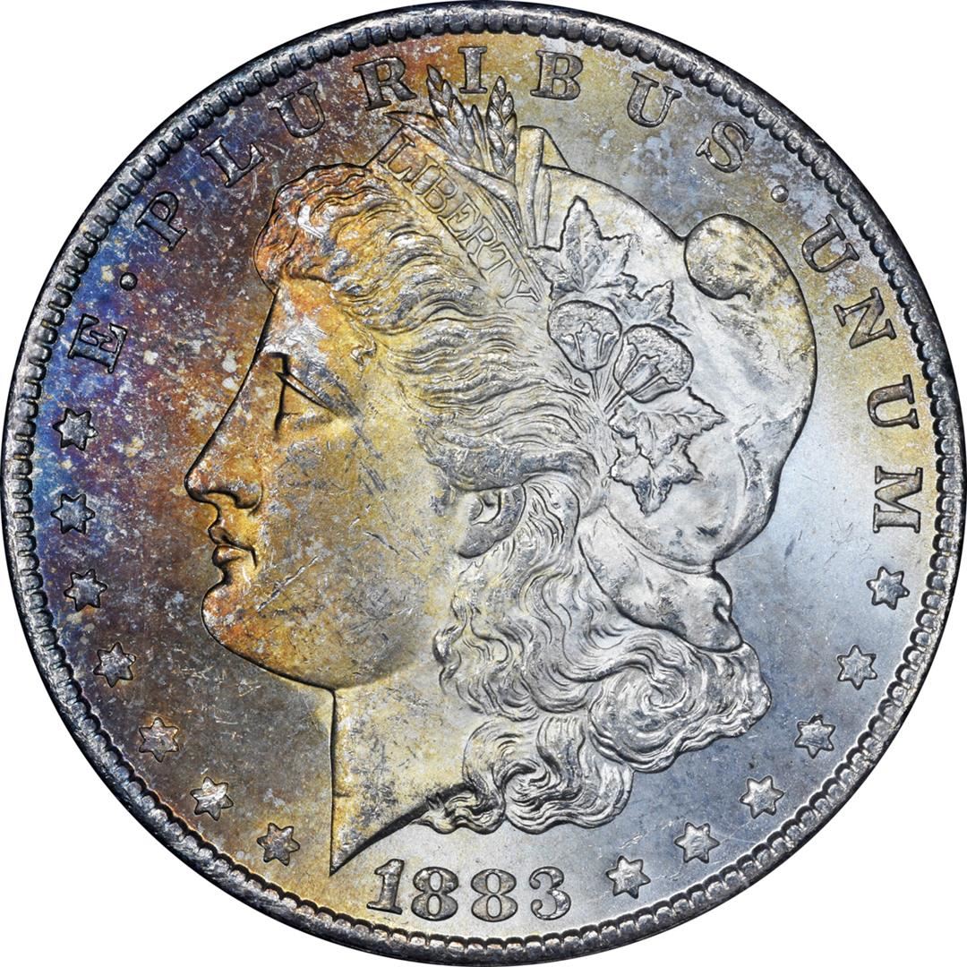 1883-CC $1 Morgan Silver Dollar Coin GSA Hoard NGC MS64 Amazing Toning