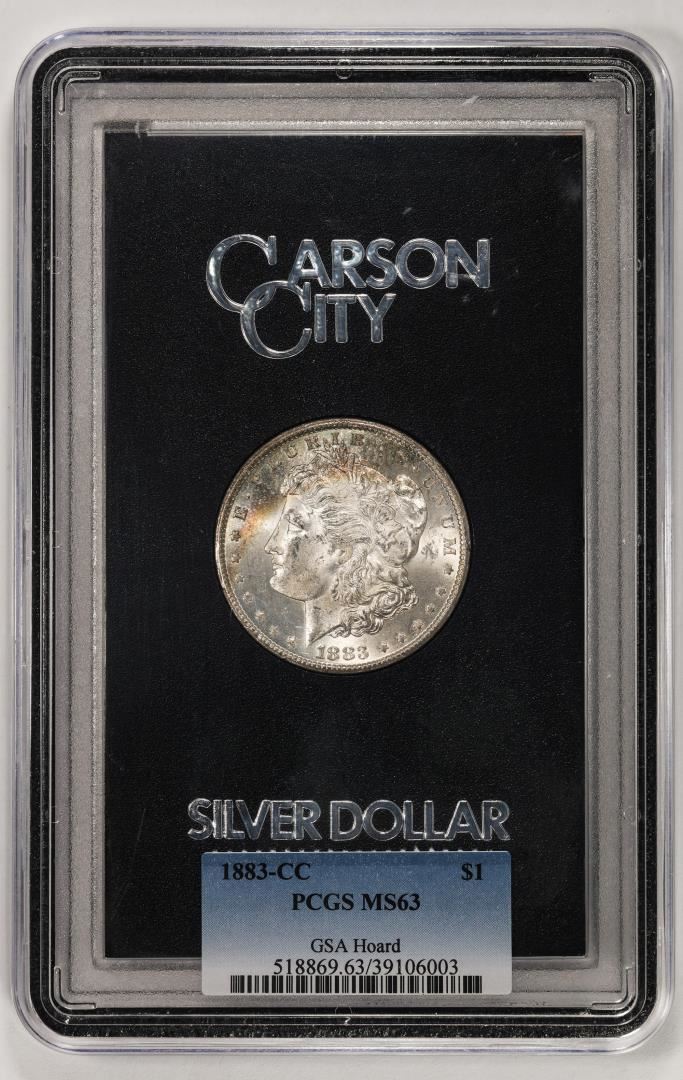 One 1883-CC $1 Morgan Silver Dollar Coin GSA Hoard PCGS MS63. PCGS Graded.