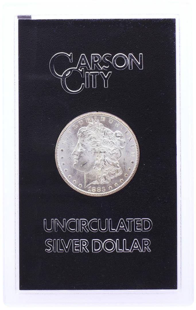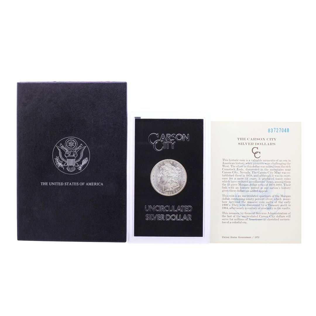 One 1883-CC $1 Morgan Silver Dollar Coin GSA Hoard Uncirculated w/Box & COA.
