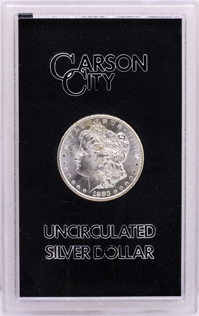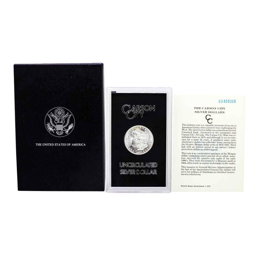 One 1883-CC $1 Morgan Silver Dollar Coin GSA Hoard Uncirculated w/Box & COA.