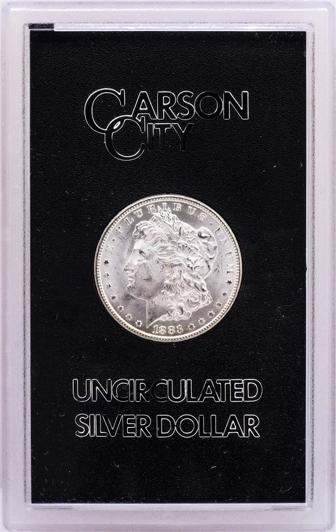 One 1883-CC $1 Morgan Silver Dollar Coin GSA Hoard Uncirculated w/Box & COA.