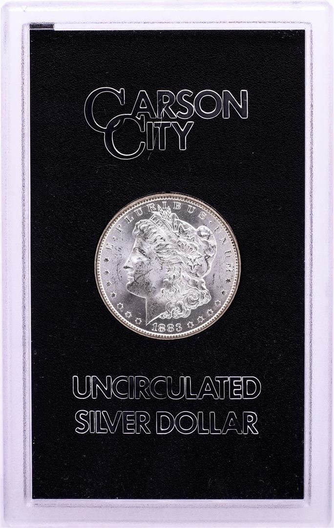 One 1883-CC $1 Morgan Silver Dollar Coin GSA Hoard Uncirculated w/Box & COA.