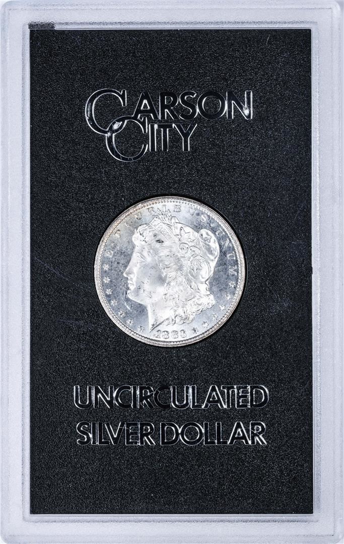 One 1883-CC $1 Morgan Silver Dollar Coin GSA Hoard Uncirculated w/Box & COA.