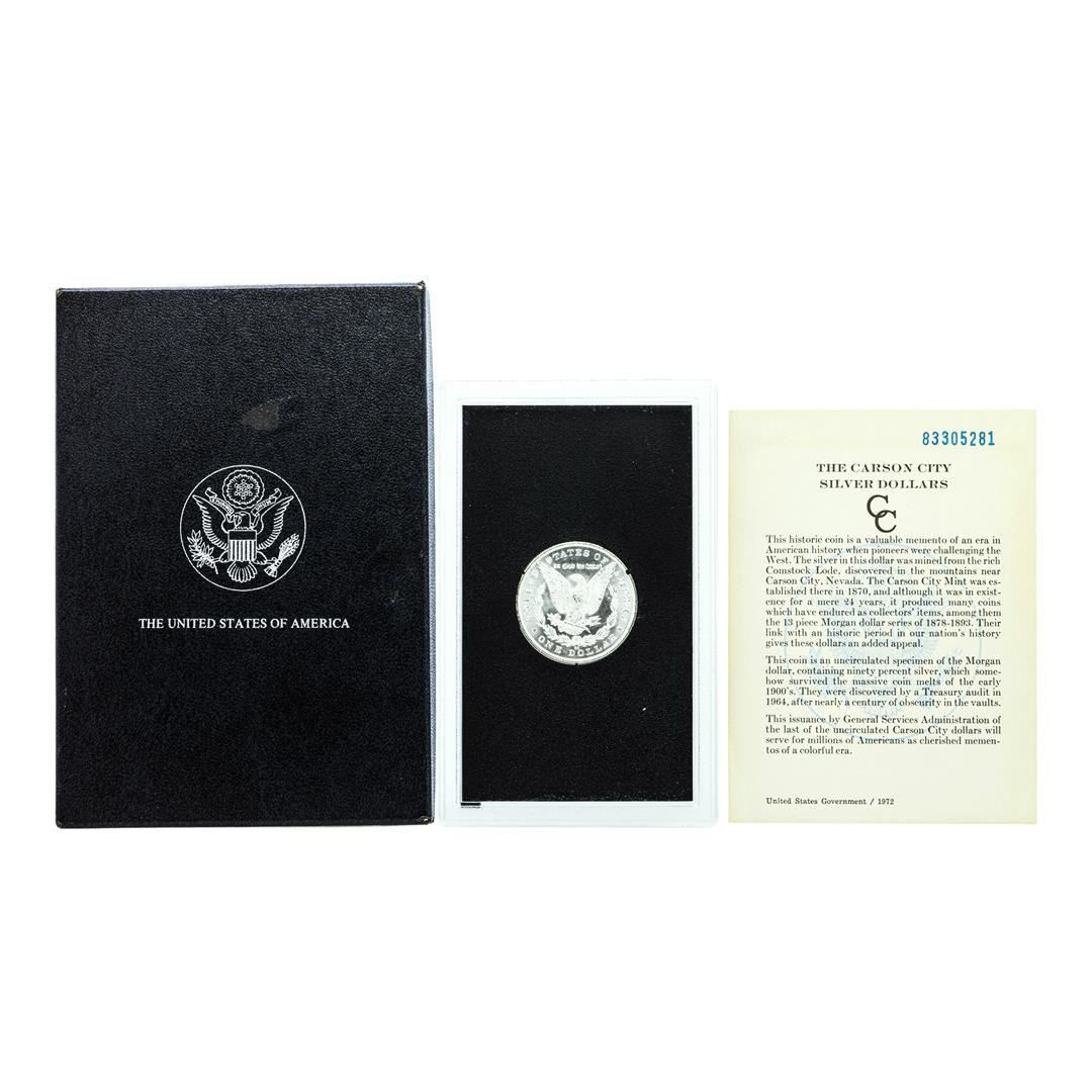 One 1883-CC $1 Morgan Silver Dollar Coin GSA Hoard Uncirculated w/ Box & COA.