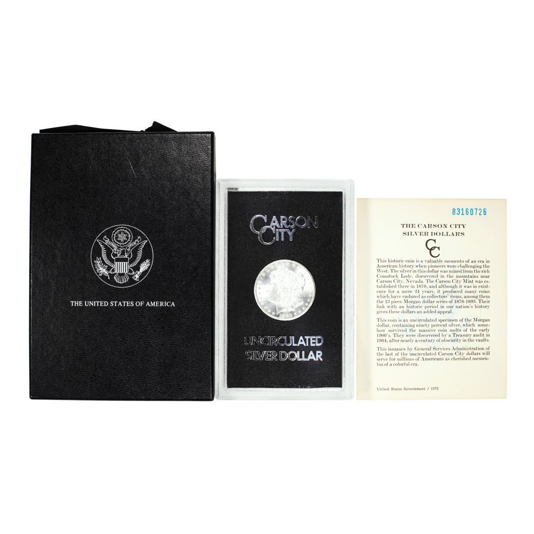 One 1883-CC $1 Morgan Silver Dollar Coin GSA Hoard Uncirculated w/Box & COA.