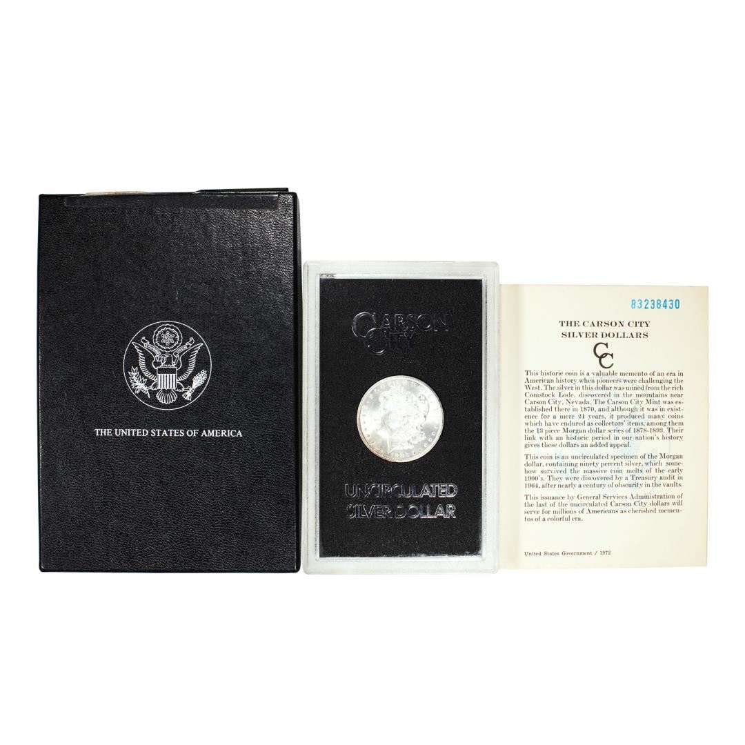 One 1883-CC $1 Morgan Silver Dollar Coin GSA Hoard Uncirculated w/Box & COA.