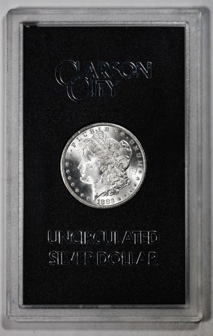 One 1883-CC $1 Morgan Silver Dollar Coin GSA Hoard Uncirculated w/Box & COA.