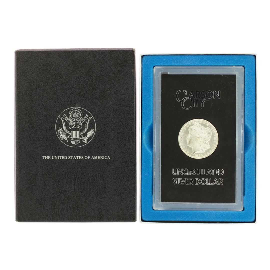 One 1883-CC $1 Morgan Silver Dollar Coin GSA Hoard Uncirculated w/ Box.