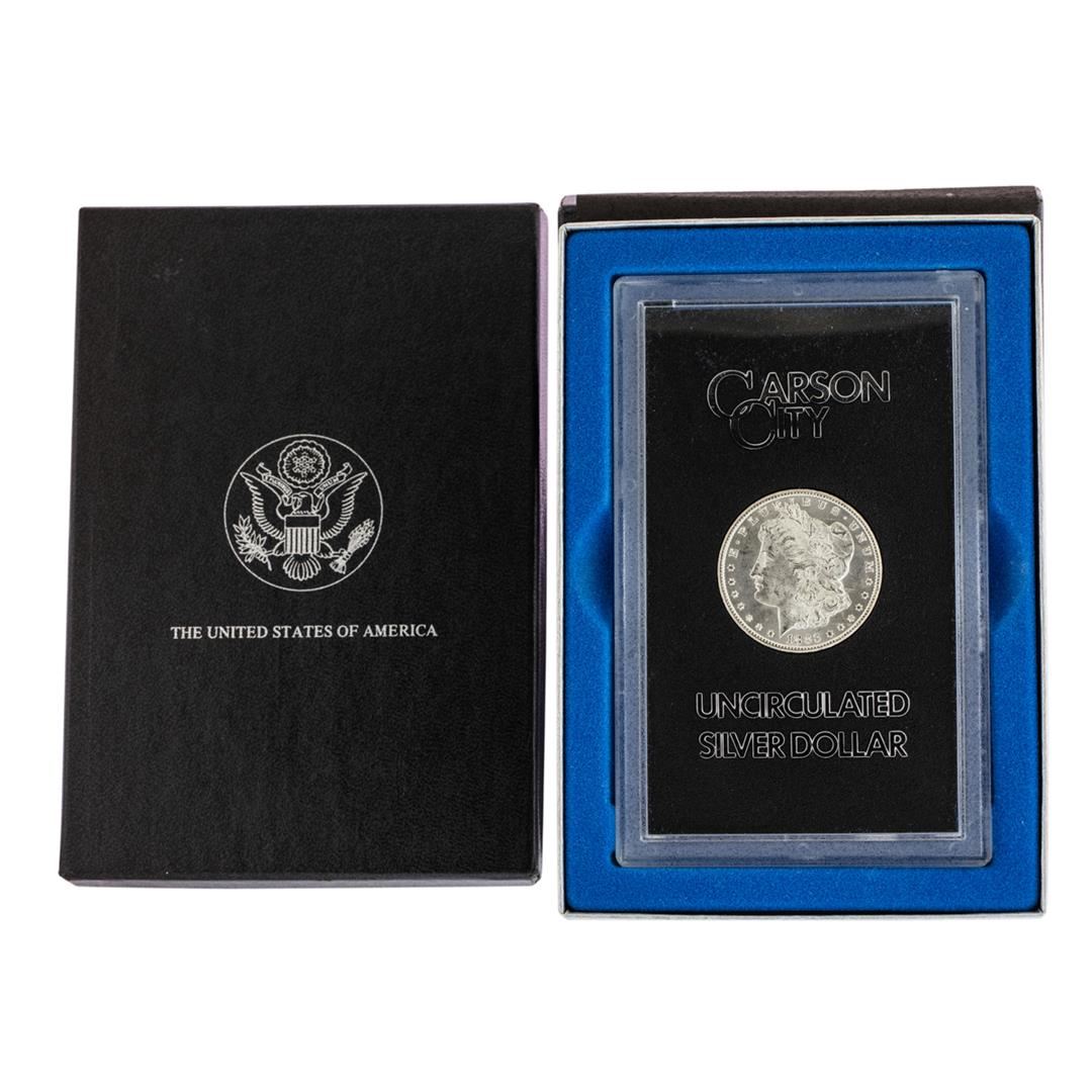 One 1883-CC $1 Morgan Silver Dollar Coin GSA Hoard Uncirculated w/ Box.