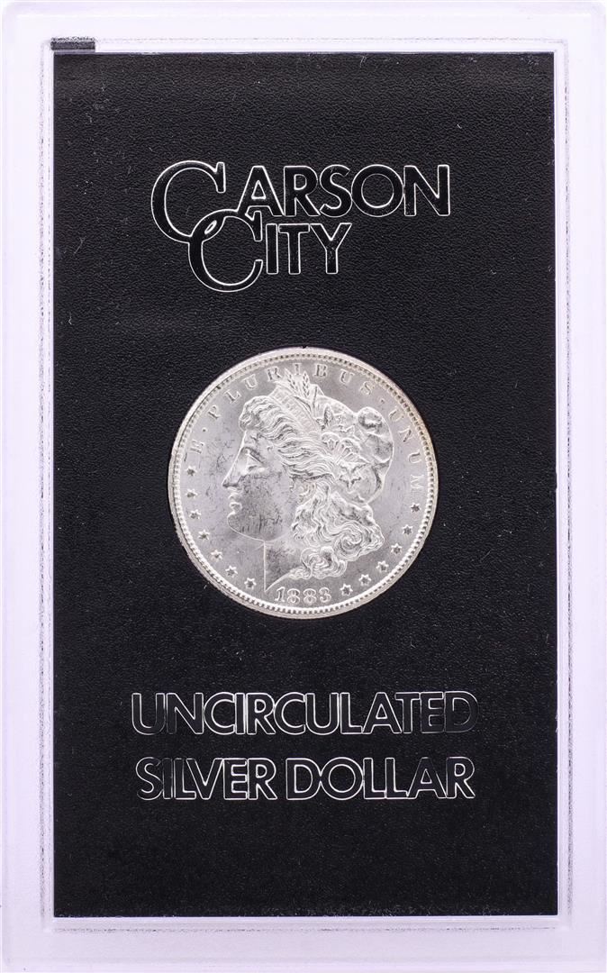 One 1883-CC $1 Morgan Silver Dollar Coin GSA Hoard Uncirculated with Box & COA.