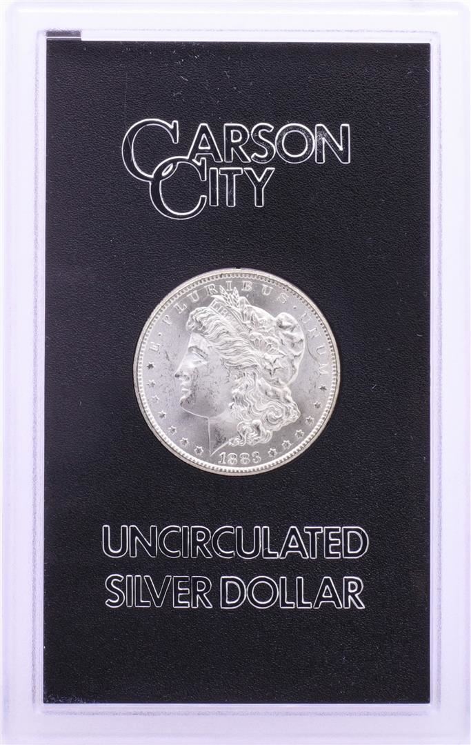 One 1883-CC $1 Morgan Silver Dollar Coin GSA Hoard Uncirculated with Box & COA.