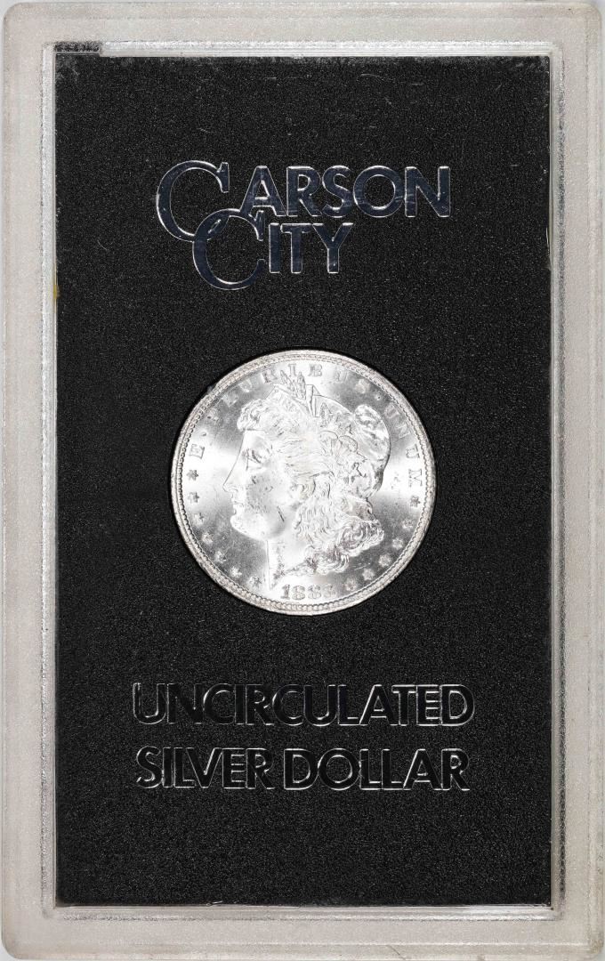 One 1883-CC $1 Morgan Silver Dollar Coin GSA Hoard Uncirculated.