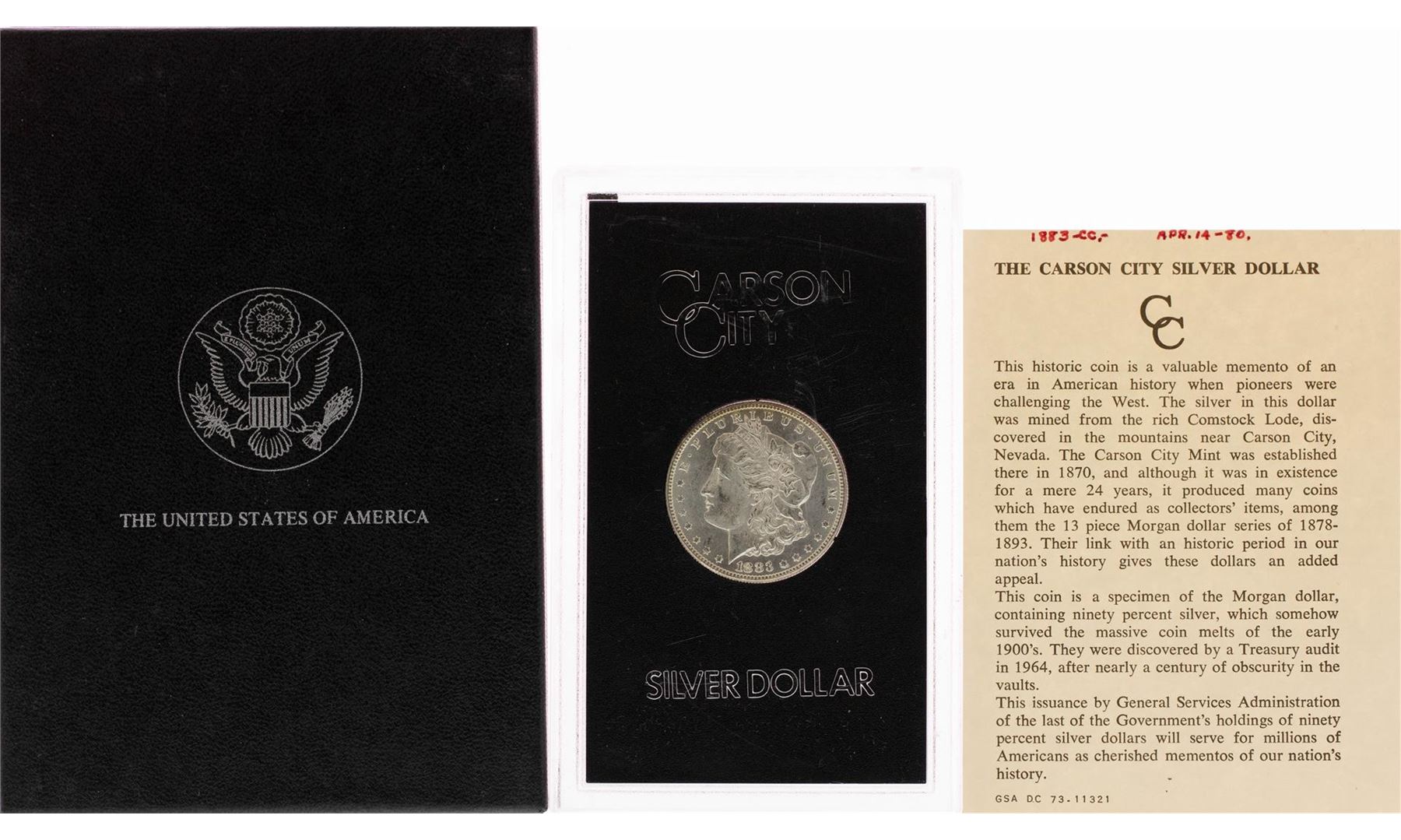 One 1883-CC $1 Morgan Silver Dollar Coin GSA Hoard w/ Box & COA.