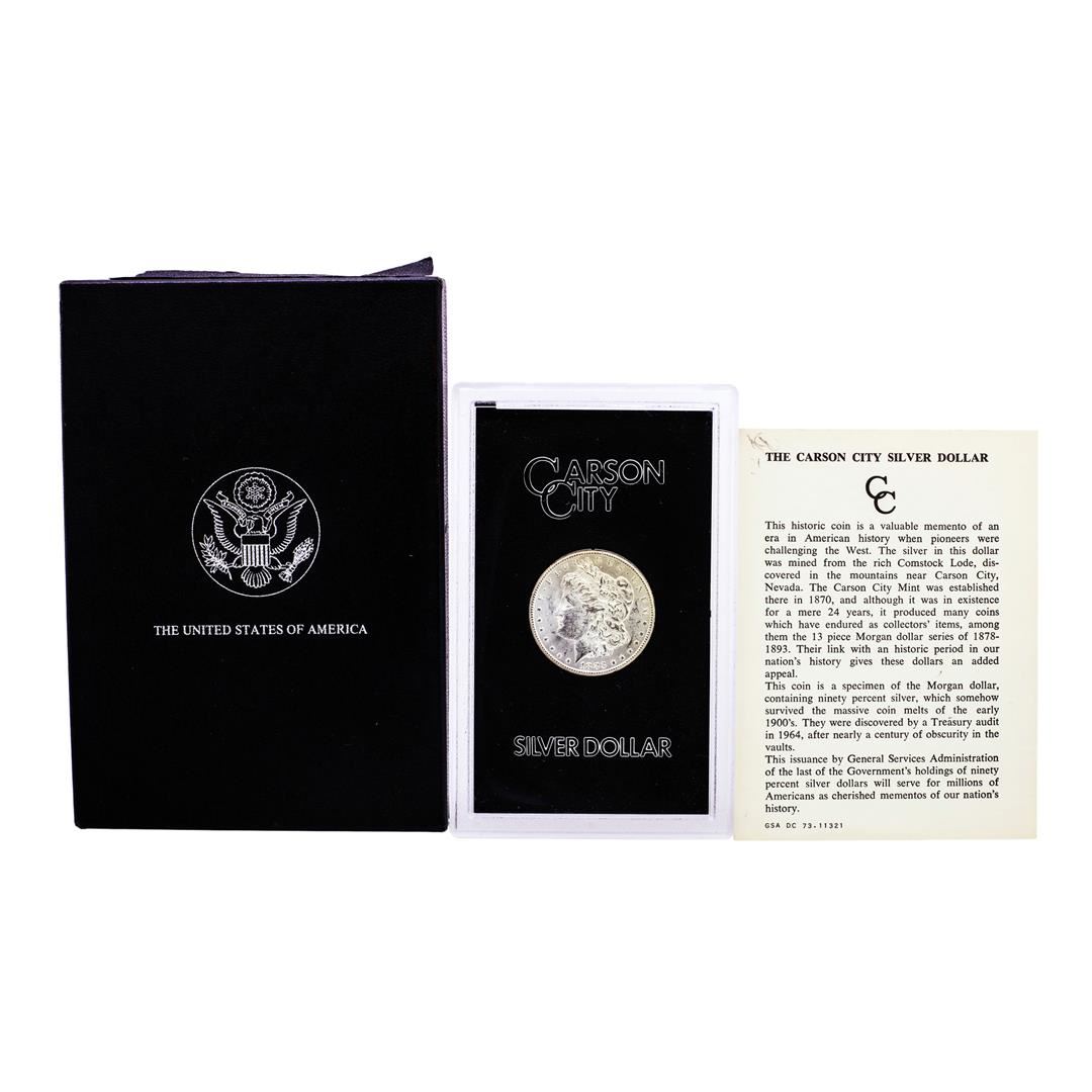 One 1883-CC $1 Morgan Silver Dollar Coin GSA Hoard with Box & COA.