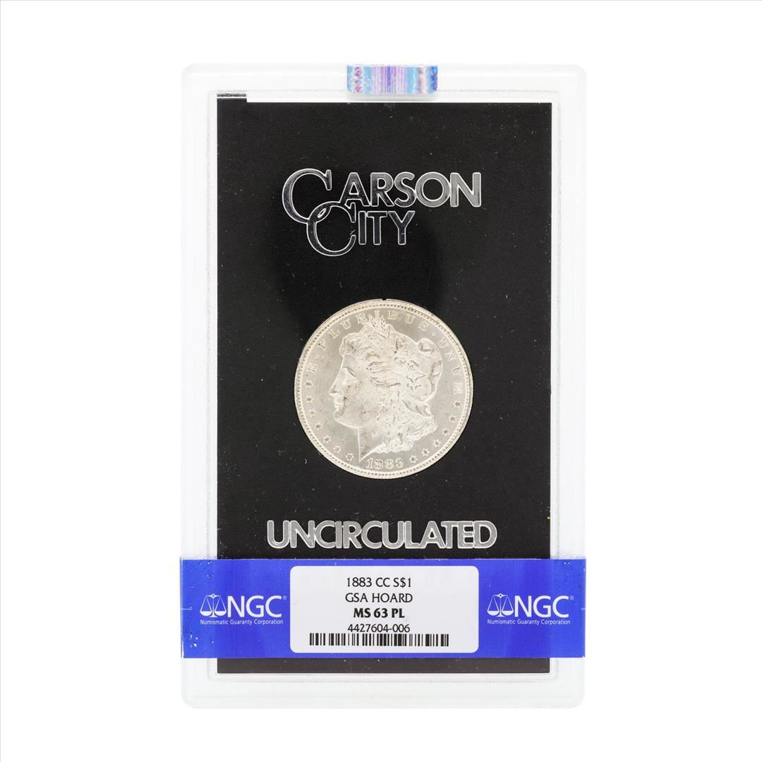 One 1883-CC $1 Morgan Silver Dollar Coin GSA NGC MS63PL. NGC Certified.