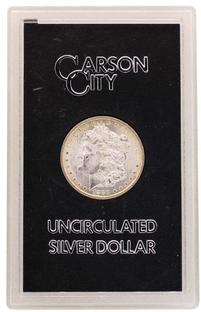One 1883-CC $1 Morgan Silver Dollar Coin GSA Uncirculated.