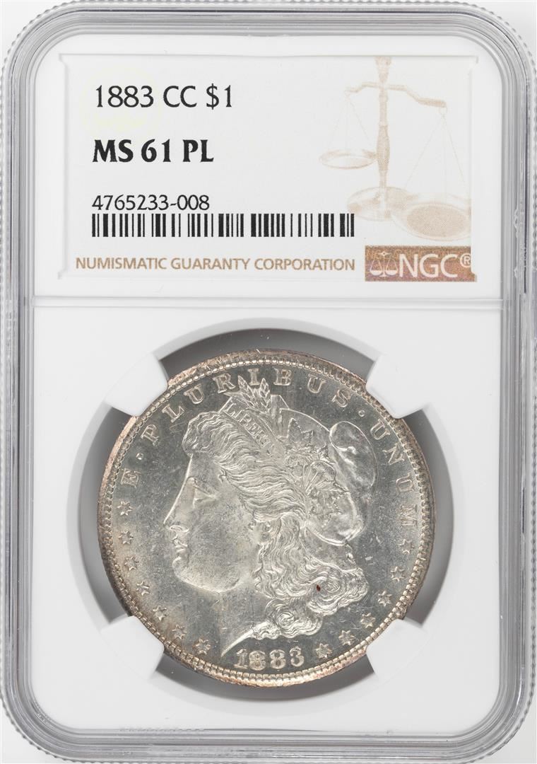 One 1883-CC $1 Morgan Silver Dollar Coin NGC MS61 PL. NGC Certified.