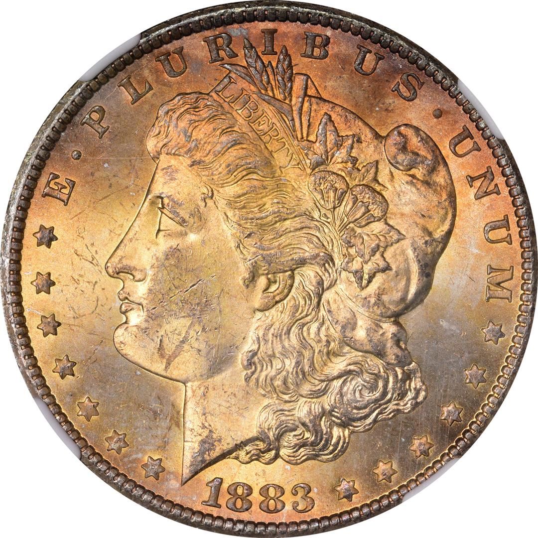 One 1883-CC $1 Morgan Silver Dollar Coin NGC MS62 Amazing Toning. NGC Certified.