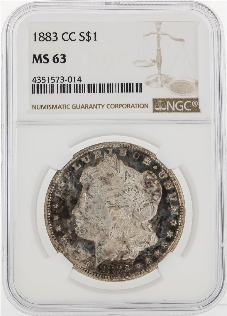 One 1883-CC $1 Morgan Silver Dollar Coin NGC MS63. NGC Certified.