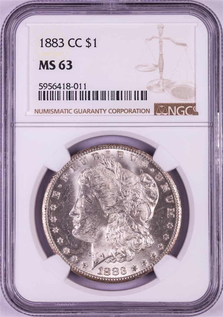 One 1883-CC $1 Morgan Silver Dollar Coin NGC MS63. NGC Certified.