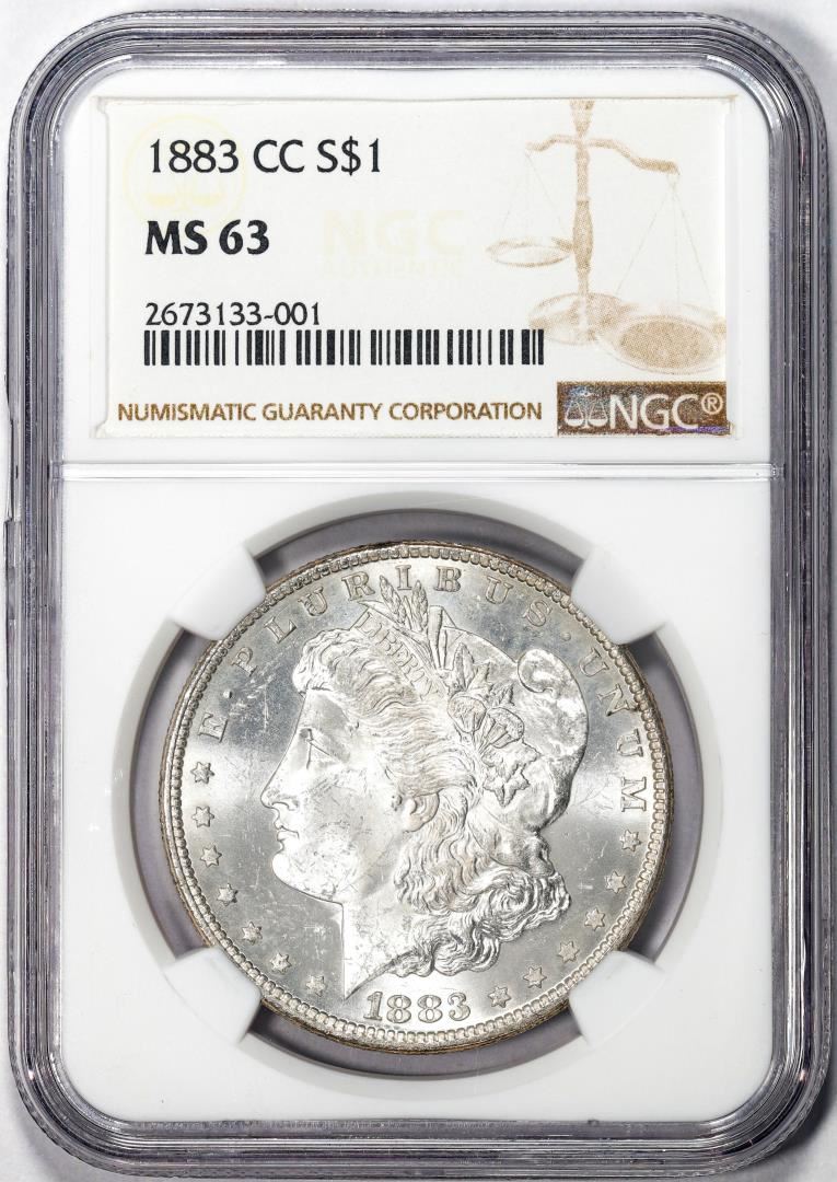 One 1883-CC $1 Morgan Silver Dollar Coin NGC MS63.