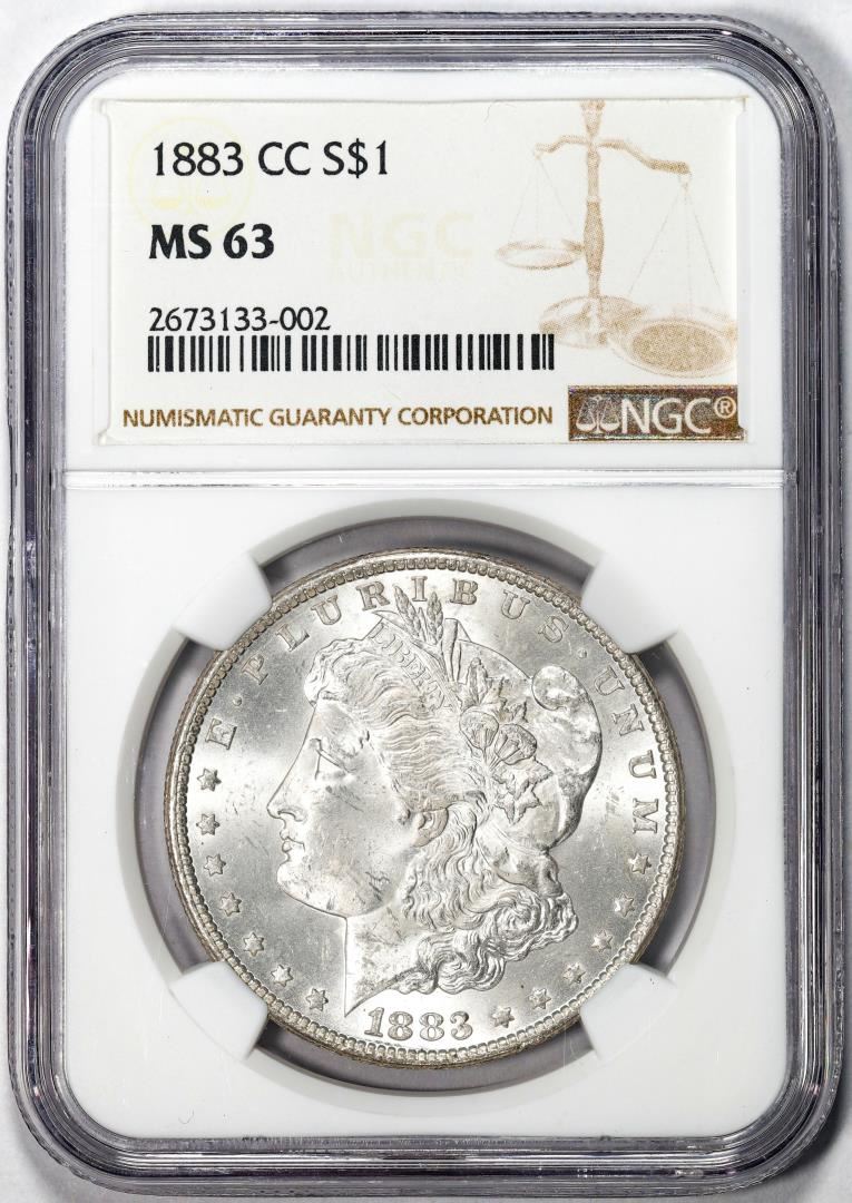 One 1883-CC $1 Morgan Silver Dollar Coin NGC MS63.