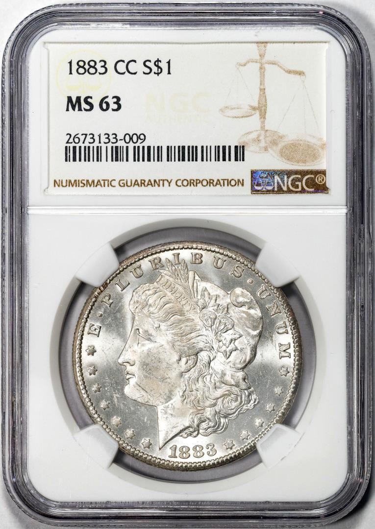 One 1883-CC $1 Morgan Silver Dollar Coin NGC MS63.