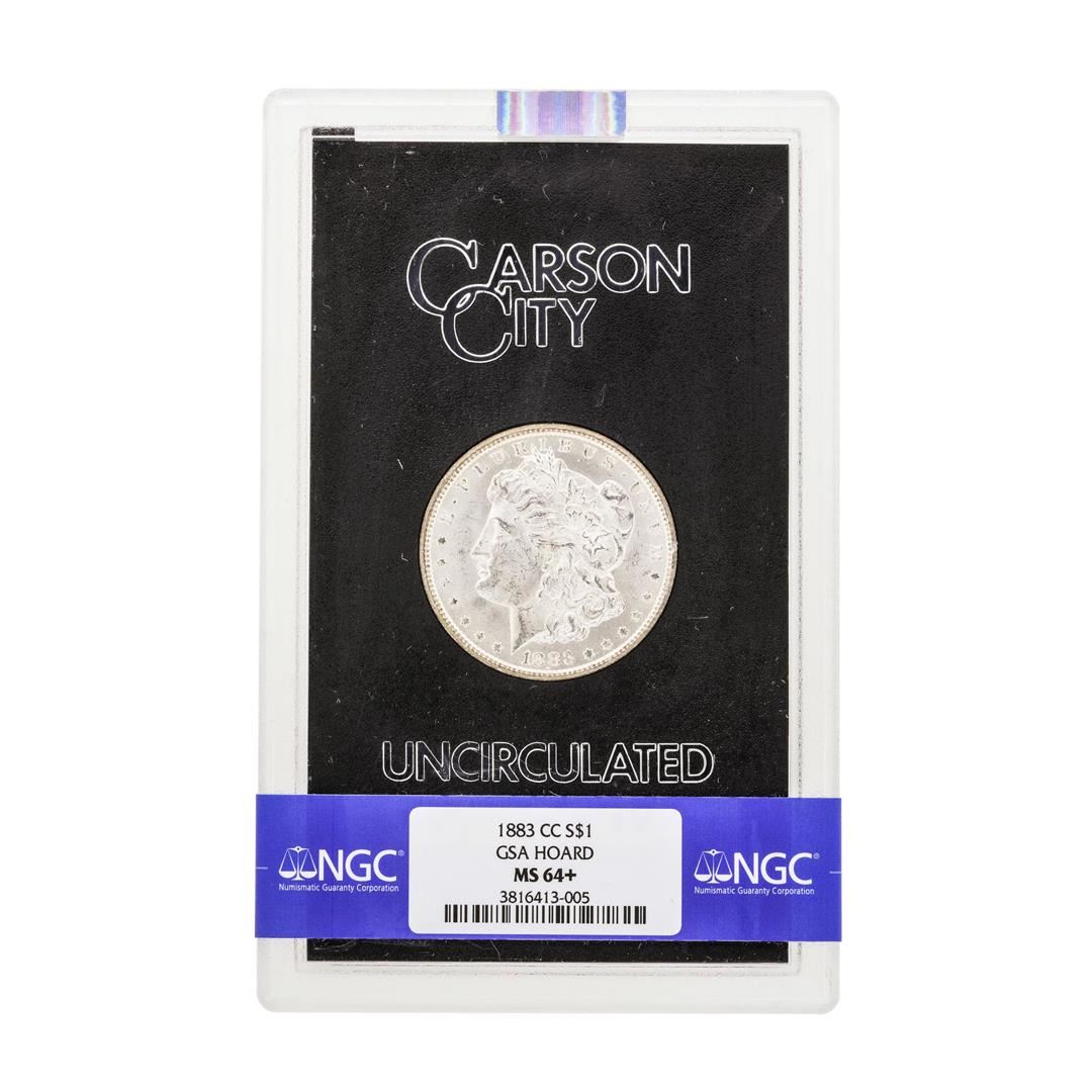 One 1883-CC $1 Morgan Silver Dollar Coin NGC MS64+ GSA. NGC Certified.