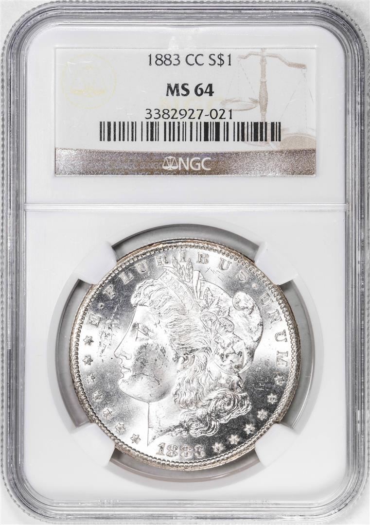One 1883-CC $1 Morgan Silver Dollar Coin NGC MS64. NGC Certified.