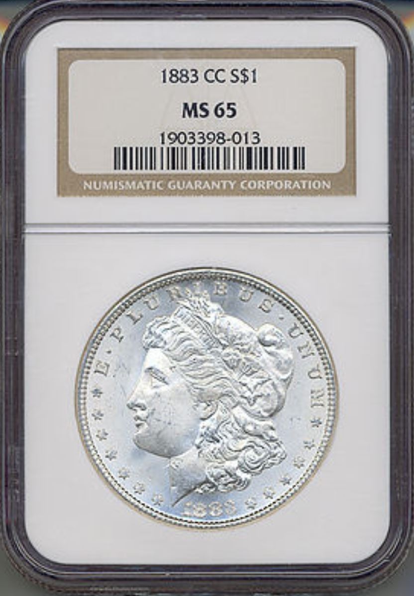 One 1883-CC $1 Morgan Silver Dollar Coin NGC MS65.