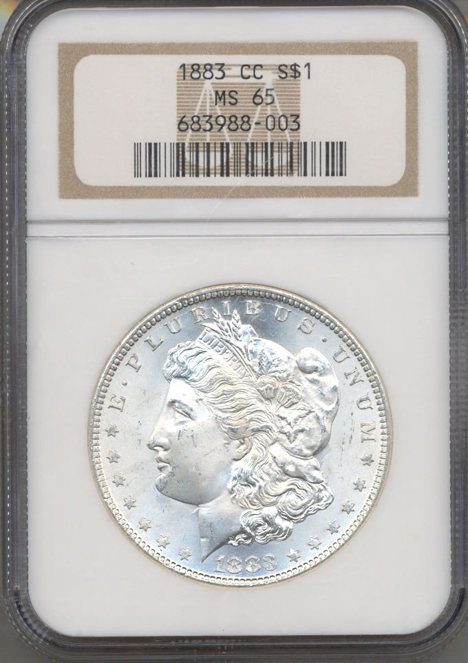 One 1883-CC $1 Morgan Silver Dollar Coin NGC MS65.