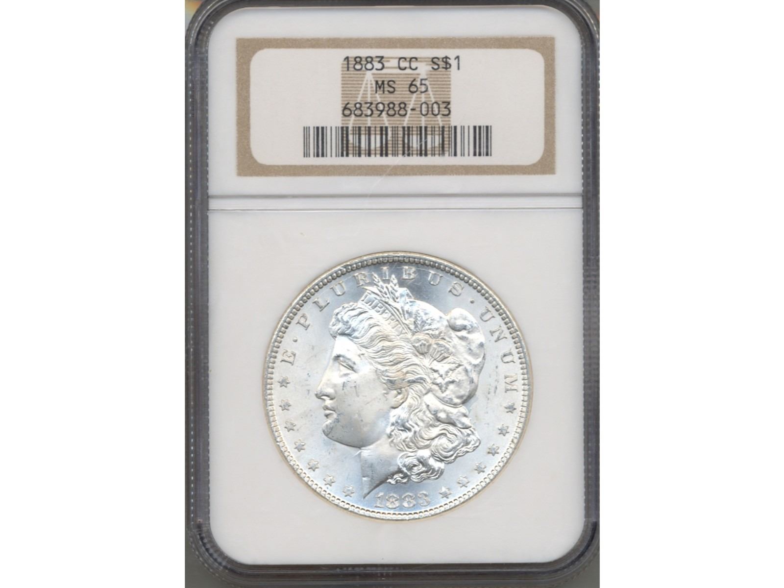 One 1883-CC $1 Morgan Silver Dollar Coin NGC MS65.