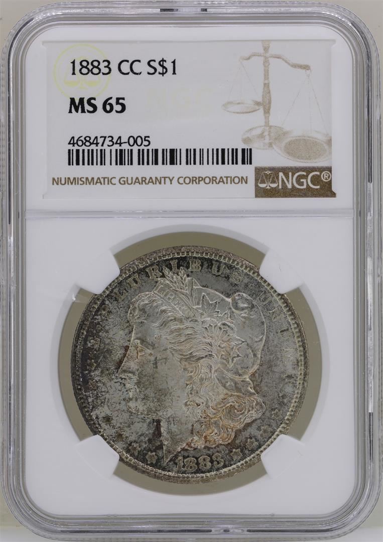 One 1883-CC $1 Morgan Silver Dollar Coin NGC MS65. NGC Certified.