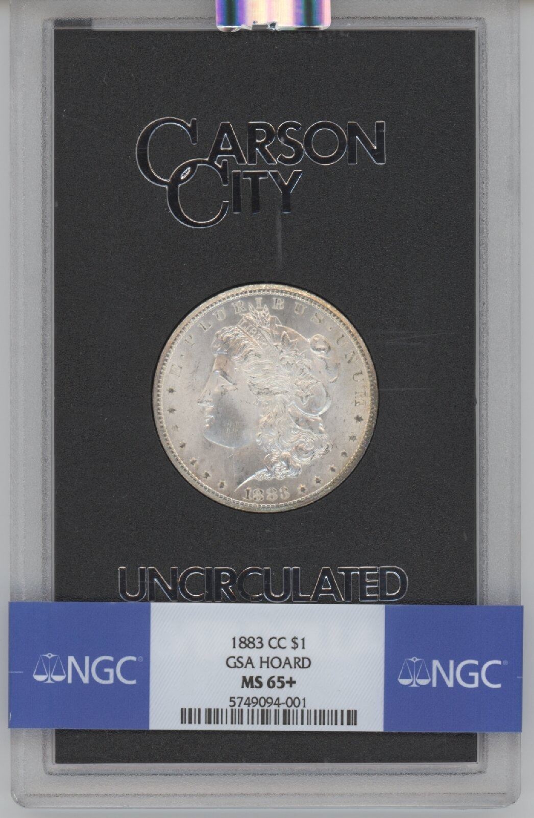 One 1883-CC $1 Morgan Silver Dollar Coin NGC MS65+.