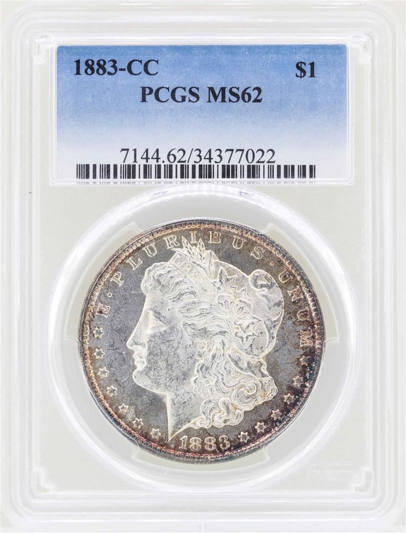 One 1883-CC $1 Morgan Silver Dollar Coin PCGS MS62. PCGS Graded.