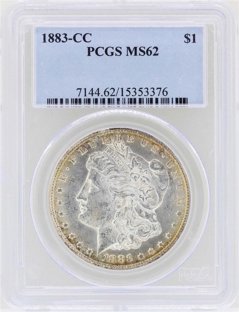 One 1883-CC $1 Morgan Silver Dollar Coin PCGS MS62. PCGS Graded.