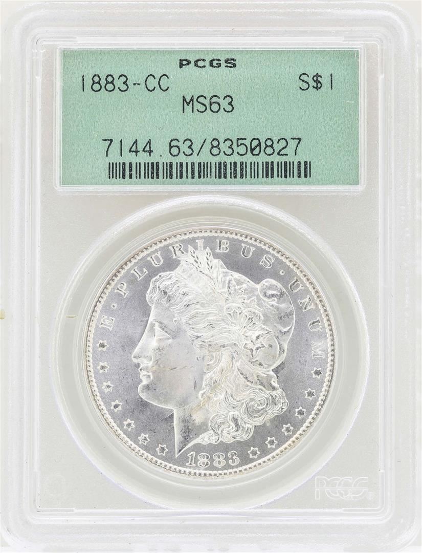 One 1883-CC $1 Morgan Silver Dollar Coin PCGS MS63. PCGS Graded.