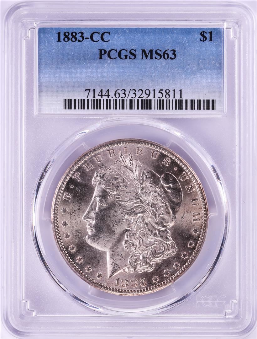 One 1883-CC $1 Morgan Silver Dollar Coin PCGS MS63. PCGS Graded.