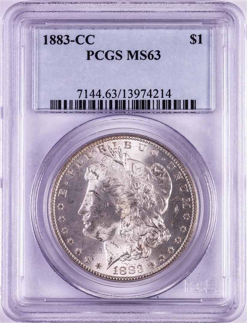 One 1883-CC $1 Morgan Silver Dollar Coin PCGS MS63. PCGS Graded.