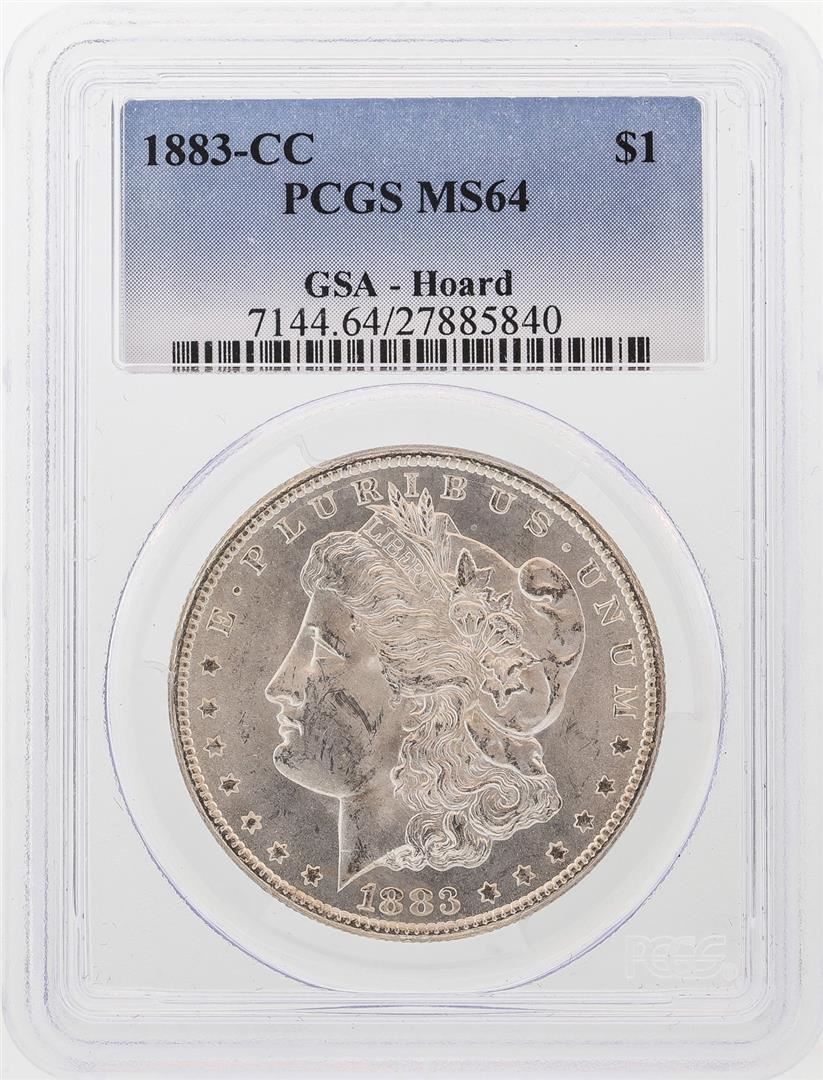 One 1883-CC $1 Morgan Silver Dollar Coin PCGS MS64 GSA. PCGS Graded.
