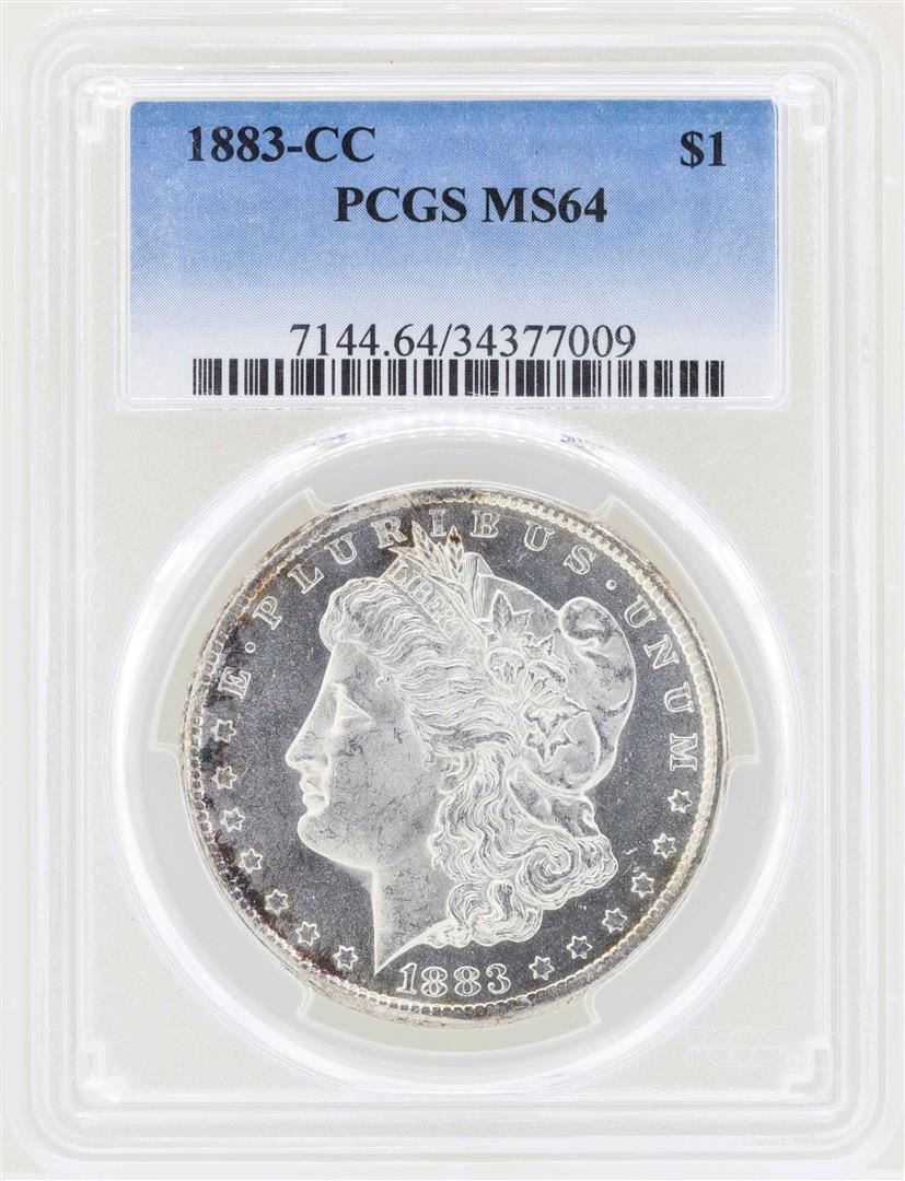 One 1883-CC $1 Morgan Silver Dollar Coin PCGS MS64. PCGS Graded.